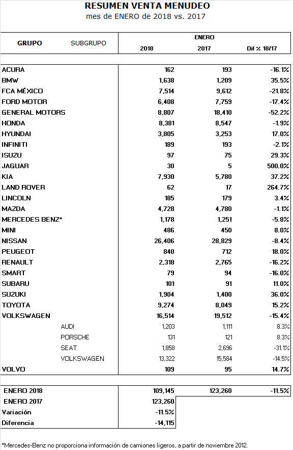 Inicio » Noticias » Venta de autos en México en enero 2018 cae 11.5 porciento » Tabla de ventas de autos México enero 2018 por marcaTabla de ventas de autos México enero 2018 por marcafebrero 2, 2018febrero 2, 2018 Tabla de ventas de autos México enero 2018 por marca Compartir: Deja un comentario Cancelar respuestaTu dirección de correo electrónico no será publicada. Los campos obligatorios están marcados con *Nombre * Correo electrónico * Web Comentario * Δ anteriorVenta de autos en México en enero 2018 cae 11.5 porciento