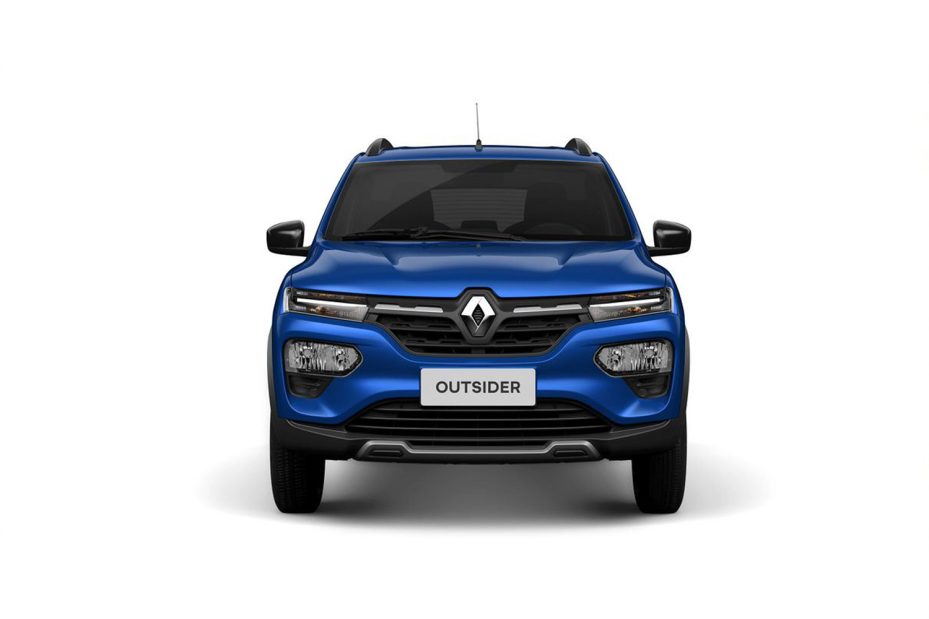 Renault Kwid 2023 color azul diseño frontal con nueva parrilla y faros LED