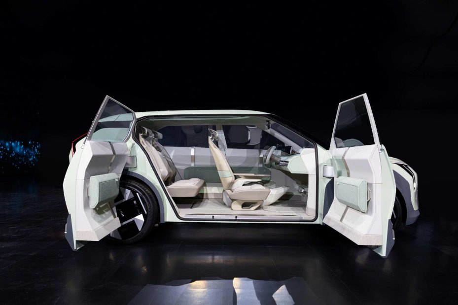Kia Concept EV3 en el KIA EV Day – exterior color verde parte lateral y puertas abiertas