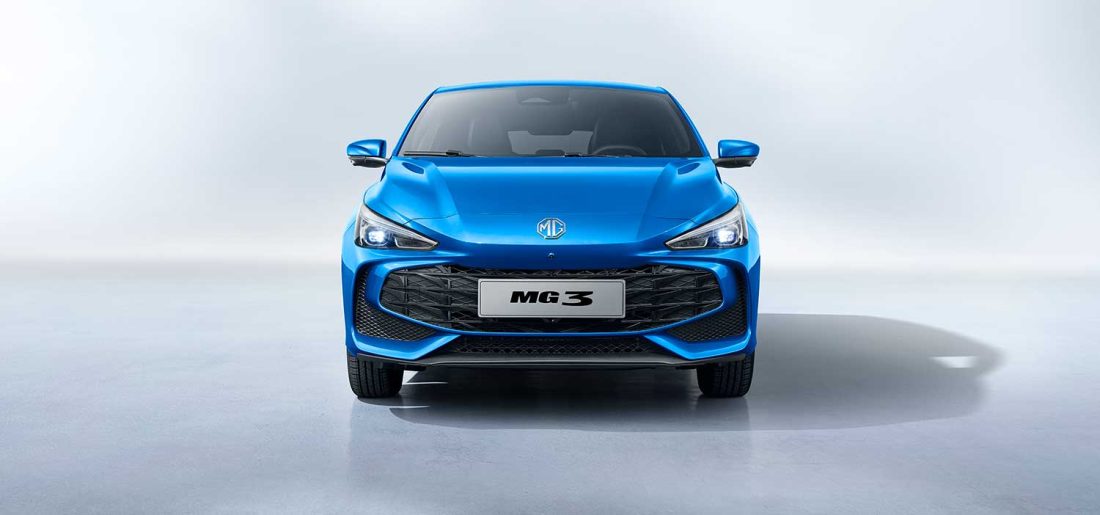 MG3 Hybrid+ 2024 diseño frontal, frente con amplia parrilla y faros LED