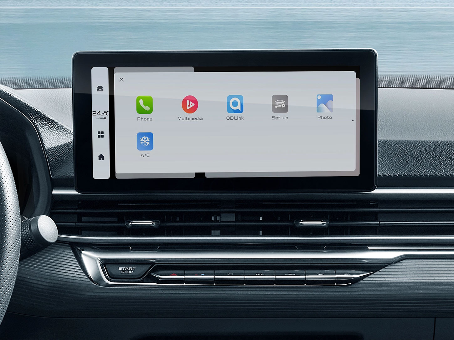 Para la conectividad, tienes Apple CarPlay, Bluetooth y QDLink. Y para el confort de todos los pasajeros, cuenta con climatizador automático con filtro CN95, salidas de aire traseras, quemacocos, y puertos USB tanto para los asientos delanteros como para los traseros. Es un interior pensado para que todos viajen cómodos y conectados.