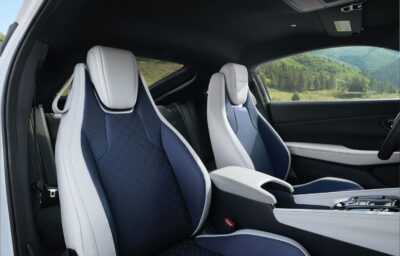 - Asientos deportivos de alta gama: Con calefacción, ventilación, y un diseño ergonómico que te mantiene seguro y cómodo en cada curva. La costura en azul y el patrón de pata de gallo perforado le dan un toque de lujo deportivo.