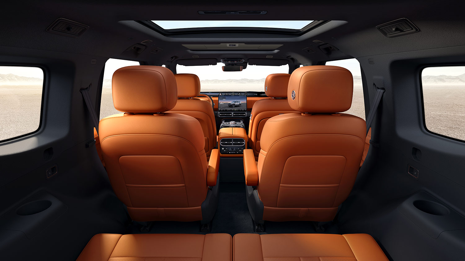 - Interfaces de Visualización: Domina un monitor envolvente de 35.4 pulgadas que agrupa el clúster de instrumentos y la pantalla de infoentretenimiento principal de 15.6 pulgadas. Para la segunda fila, un monitor trasero de techo de 17.3” garantiza el entretenimiento.
