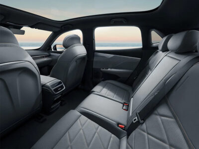Al acceder a la cabina, el conductor y los pasajeros son recibidos por un ambiente que fusiona el confort con la digitalización avanzada. El diseño interior es envolvente, con vestiduras en piel sintética de alta calidad y una interfaz centrada en la experiencia del usuario. La ergonomía está garantizada con asientos delanteros que no solo ofrecen ajuste eléctrico (6 posiciones para el conductor, 4 para el copiloto) con memorias, sino que incorporan funciones de calefacción y ventilación, además de una práctica función de bienvenida con ajuste lumbar.