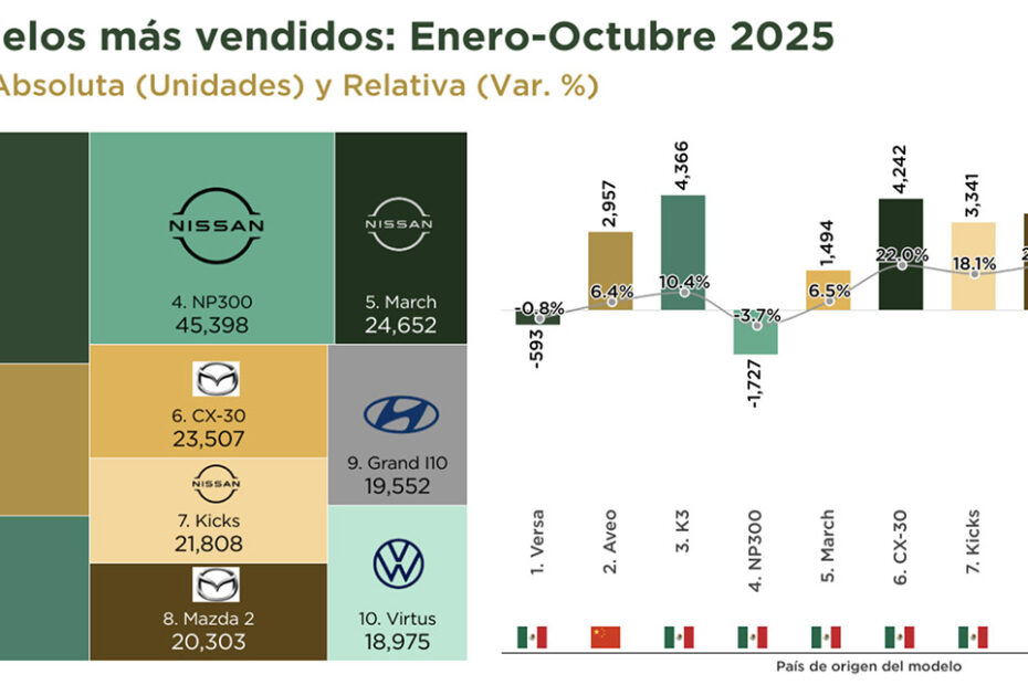 Inicio » Noticias » Los 10 autos más vendidos en México en octubre de 2025 y las marcas más vendidas