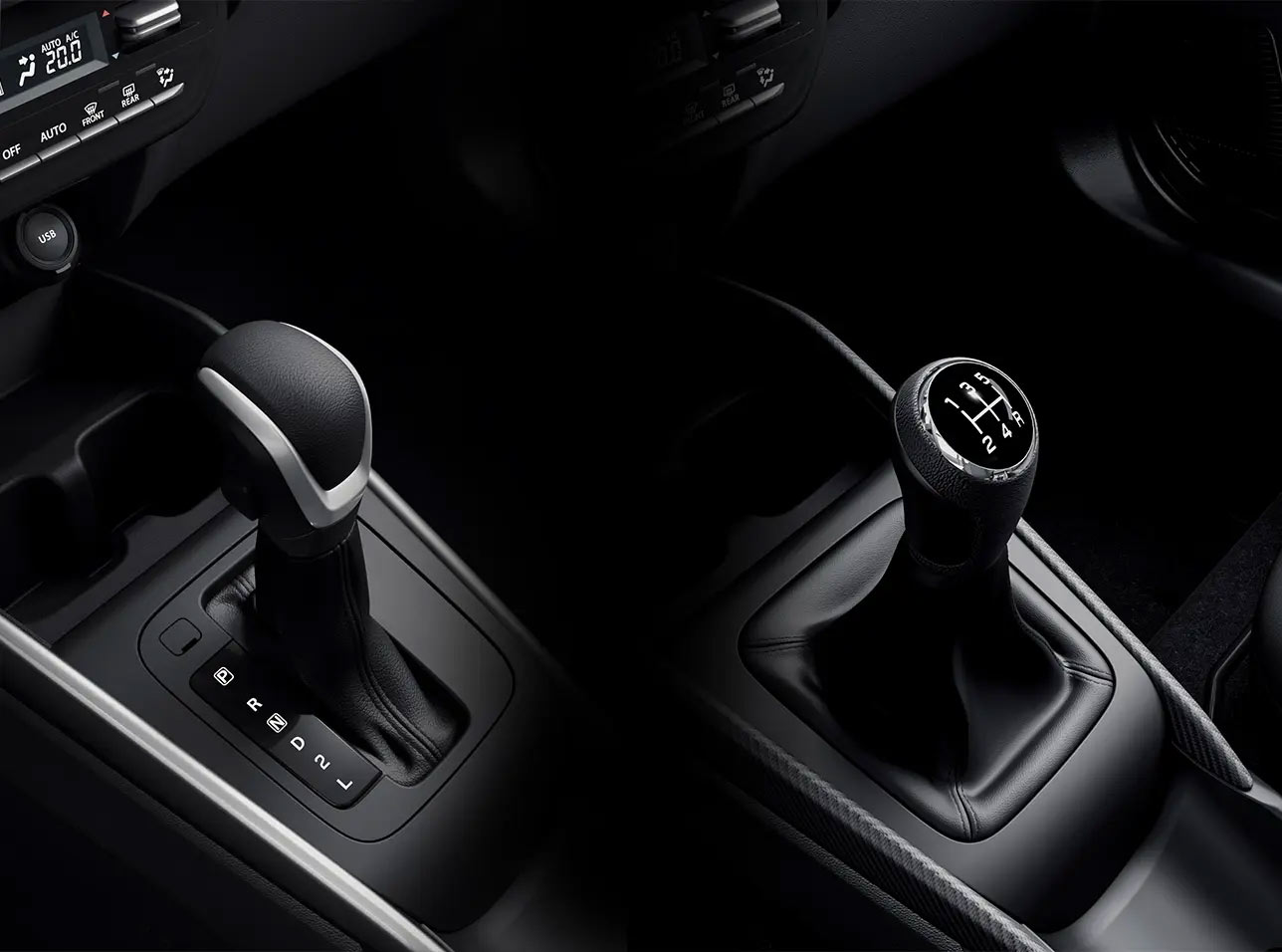 El diseño hatchback se potencia con un spoiler y un ornamento cromado en la quinta puerta, dándole un toque más deportivo y moderno. A nivel de comfort, el aire acondicionado manual con panel digital es una interfaz limpia y funcional. El conductor se beneficia de los controles de audio al volante, manteniendo la atención en la carretera.