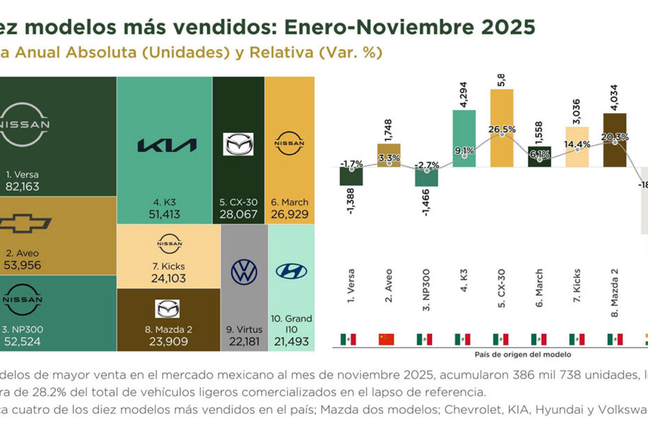 Top 10 modelos más vendidos (enero-noviembre 2025)
